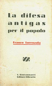 LORENZOLA Franco (direttore laboratorio chimico provinciale - Vercelli, C.M. 28° Batt. C.N. - Ten. Art.), La difesa antigas per il popolo, Vercelli, Vittorio Giovannacci Editore Librario, s.d., br., pp 108, f.to 12,4x20,4 (ITA)