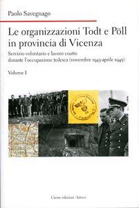 SAVEGNAGO Paolo, Le organizzazioni Todt e Pöll in provincia di Vicenza. Servizio volontario e lavoro coatto durante l'occupazione tedesca (novembre 1943-aprile 1945), Sommacampagna (VR), Cierre Edizioni (Coll.: nordest. nuova serie, n. 116), Vol. 1, 2012, br., pp 307, ill. in b./n. n.t., pref. di Roberto Spazzali, f.to 15,5x23. (ITA) |