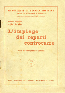 VENIER Aldo (ten. col.), L'impiego dei reparti controcarro, Roma, Rivista ‘Nazione Militare’ (Coll. Manualetti di tecnica militare), 1942, spill., pp 24, 27 ill. n.t., f.to 14,5x20,8. (ITA)