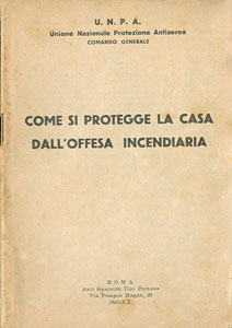 UNIONE NAZIONALE PROTEZIONE ANTIAEREA. COMANDO GENERALE, Come si protegge la casa dall'offesa incendiaria, Roma, Arti Grafiche Ugo Pinnaṛ, 1942-XX, spill., pp 32, ill. in b./n. n.t., f.to 10,2x15. (ITA)