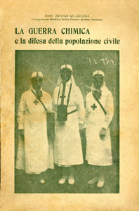QUARTARA Nicoḷ (dott., 1° cap. medico della Croce Rossa Italiana), La guerra chimica e la difesa della popolazione civile, Torino, Baravalle e Falconieri, 1933-XII, br., pp 216, 42 ill. in b./n. n.t., f.to 14x21,5. (ITA)