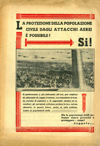 IL GIORNALE D'ITALIA (sotto gli auspici della Unione Nazionale Protezione Antiaerea), La protezione della popolazione civile dagli attacchi aerei è possibile?, Roma, Stabilimento tipografico de 'Il Giornale d'Italia', spill., 1935-XIII, pp 23, ill. in b./n. n.t., f.to 20x29. (ITA) |