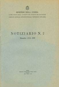 MINISTERO DELLA GUERRA. COMANDO DEL CORPO DI STATO MAGGIORE. COMITATO CENTRALE INTERMINISTERIALE PROTEZIONE ANTI-AEREA, Notiziario n.2. Dicembre 1934-XII, Roma, Istituto Poligrafico dello Stato. Libreria, 1934, spill., pp 40, f.to 21,5x31. (ITA)