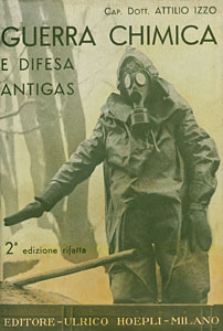 IZZO Attilio, Guerra chimica e difesa antigas, Milano, Hoepli, 1934 (2^ ed. aggiornata ed aumentata), br., pp XII-463, 119 ill. in b./n. n.t. + una tabella f.t., f.to 13x19. (ITA)