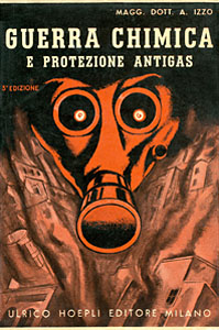 IZZO Attilio (Magg., Dott.), Guerra chimica e protezione antigas, Milano, Hoepli, 1938 (3^ ed. aggiornata ed aumentata), br., pp XV-613, 163 ill. n.t. + una tabella f.t., f.to 13x19,5. (ITA)