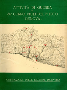 LEONCINI Dario (ing.), Attivitą di guerra del 36° Corpo Vigili del Fuoco di Genova: Costruzione delle gallerie ricovero, Genova, Arti Grafiche Drocchi & C., 1945, br., pp 59, ill. in b./n. n.t., f.to 22,5x29. (ITA)