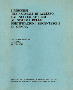 BESIO DOMINICI Maria Luisa - CHIRICO Antonio - POLASTRI Guglielmo, I percorsi tradizionali di accesso dal nucleo storico al sistema delle fortificazioni seicentesche di Genova, Genova, Facoltà di Ingegneria della Università di Genova. Istituto di Architettura e Tecnica Urbanistica, 1976, br., pp 144, carte ripiegate, f.to 18,5x22,5 (ITA) |