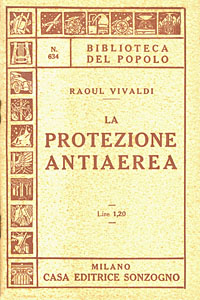 VIVALDI Raoul, La protezione antiaerea, Milano, Sonzogno (Coll. Biblioteca del Popolo, n.634), 1940, spill., pp 63, 15 ill. in b./n. n.t., f.to 11x16,2. (ITA)