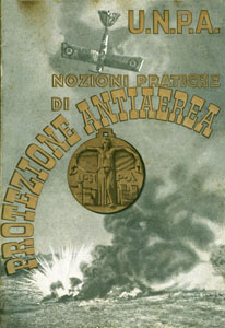 U.N.P.A. (a cura del cap. Renato Mele), Nozioni pratiche di protezione antiaerea. 3^ ristampa aggiornata, Bergamo, Istituto Italiano d'Arti Grafiche, 1935-XIV, spill., pp 33, ill. n.t., f.to 17x24. (ITA)