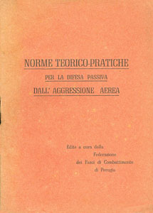 FEDERAZIONE DEI FASCI DI COMBATTIMENTO DI PERUGIA, Norme teorico-pratiche per la difesa passiva dall'aggressione aerea, Perugia, Tip. Rivoluzione fascista G. Donnini, s.d., spill., pp 24, f.to 12x16,8. (ITA)