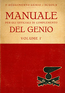 CIPRIANI Fernando (cap.) - BETTIO Francesco (cap. dott.) - CARCANI Lelio (cap.) - (in testa: 3° Reggimento Genio. Scuola), Manuale per gli ufficiali di complemento del Genio, vol.1: Topografia - Resistenza dei materiali - Armi - Tiro - Fortificazione campale - Difesa collettiva antigas - Richiami di meccanica e di elettrotecnica - Motori a combustione ed elettrici - Automobilismo - Macchine operatrici - Funzioni trigonometriche e principali algoritmi, Pavia, Istituto Pavese di Arti Grafiche, 1935-XIII, br., pp 427, 208 ill. in b./n. n.t., f.to 12x17. (ITA) |
