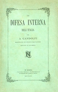 GANDOLFI A. (Magg. di S.M., Deputato), La difesa interna dell'Italia, Bologna, Zanichelli, 1875, br., pp 157, f.to 14,5x22,8. (ITA)