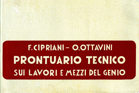 CIPRIANI F. - OTTAVINI O., Prontuario tecnico sui lavori ed i mezzi del Genio, Treviglio (BG), Tipografia Bonomi, 1952, br., pp ?, ill. in b./n. n.t., f.to 21x14,5. (ITA)