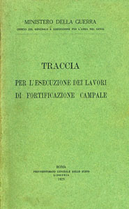 MINISTERO DELLA GUERRA. UFFICIO DEL GENERALE A DISPOSIZIONE PER L'ARMA DEL GENIO, Traccia per l'esecuzione dei lavori di fortificazione campale, Roma, Provveditorato Generale dello Stato. Libreria, 1925, spill., pp 42, ill. in b./n. f.t., f.to 11,5x18. (ITA) |