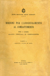 STATO MAGGIORE REGIO ESERCITO, Nozioni per l'addestramento al combattimento per i corsi Allievi Ufficiali di Complemento, Parte 1^: Comune a tutte le armi, Roma, Edizioni de 'Le Forze Armate', 1942-XX, br., pp 322, ill. in b./n. n.t., f.to 15,7x23. (ITA) |