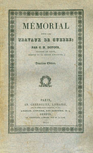 DUFOUR G.H. (Colonel du Génie, Membre de la Légion d'honneur), Mémorial pour les travaux de guerre, Paris-Genève, Cherbuliez, 1831 (2^ Ed.), br., pp IX-397, 6 tav. in b./n. f.t., f.to 13,5x22. (FRA)