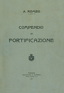 ROMEO Antonino, Compendio di fortificazione, Torino, Tipografia L. Rattero, 1915, br., pp 106, ill. in b./n. n.t. e 5 tav. f.t., f.to 16x23. (ITA)