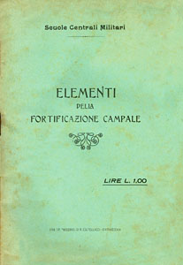 PELOSIO G.B. (Magg. Genio) (in testa: Scuole Centrali Militari), Elementi della fortificazione campale, Civitavecchia (RM), Stab. Tip. 'Moderno' di R. Coltellacci, s.d., spill., pp 27, f.to 16,5x23,7. (ITA)