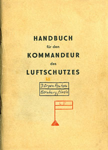 MINISTERIUM DES INNERN. KOMMANDO DES LUFTSCHUTZ, Handbuch für den Kommandeur des Luftschutzes. Nur für den Dienstgebrauch, Berlin, Verlag des Ministeriums des Innern (2^ Auflage), s.d., spill., pp 80, ill. in b./n. e a col. n.t., f.to 10x14,5. (DEU)