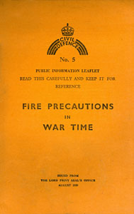 THE LORD PRIVY SEAL'S OFFICE, Civil Defence Public Information Leaflet No.5: Fire Precautions in War Time, s.l., s.e., 1939, foglio unico ripiegato, pp 4, f.to 14x22. (ENG)