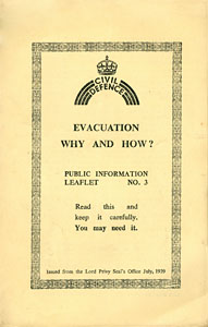 THE LORD PRIVY SEAL'S OFFICE, Civil Defence Public Information Leaflet No.3: Evacuation why and how?, s.l., s.e., 1939, foglio unico ripiegato, pp 4, f.to 14x22. (ENG)