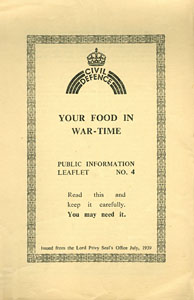 THE LORD PRIVY SEAL'S OFFICE, Civil Defence Public Information Leaflet No.4: Your Food in War-Time, s.l., s.e., 1939, foglio unico ripiegato, pp 4, f.to 14x22. (ENG)