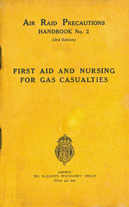 HOME OFFICE. AIR RAID PRECAUTIONS DEPARTMENT, Air Raid Precautions. Handbook No.2: First Aid and Nursing for Air Raid Casualties, London, His Majesty's Stationery Office, 1938 (3rd Edition), spill., pp 47, f.to 10x16,5. (ENG)