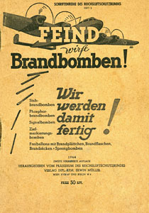 PRÄSIDIUM DES REICHSLUFTSCHUTZBUNDES, Feind wirft Brandbomben, Berlin-Wien, Verlag Kaufmann Erwin Müller, 1944, spill., pp 63, ill. in b./n. n.t., f.to 14,7x20,6. (DEU)