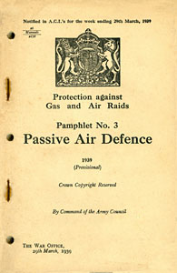 COMMAND OF THE ARMY COUNCIL, Protection against Gas and Air Raids. Pamphlet No.3: Passive Air Defence, London, The War Office, 1939, spill., pp 125, f.to 12x18. (ENG)