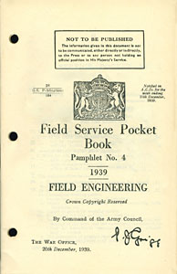 COMMAND OF THE ARMY COUNCIL, Field service pocket book. Pamphlet No.4: Field Engineering, London, The War Office, 1939, spill., pp 65, ill. in b./n. n.t., f.to 10,5x16. (ENG)