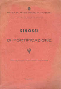 SCUOLA DI APPLICAZIONE DI FANTERIA, Sinossi di fortificazione. 9° Corso. Anno scolastico 1937-38-XVI (Riservato ad uso esclusivo degli Allievi della Scuola di Applicazione di Fanteria e fuori commercio), Parte I: Fortificazione campale, Parma, Tipografie Riunite Donati, 1937-XVI, br., pp 223, 49 tavole in b./n. f.t., f.to 22x31,5. (ITA) |