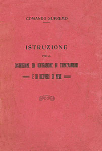 COMANDO SUPREMO, Istruzione per la costruzione ed occupazione di trinceramenti e di ricoveri di neve, s.l., s.e., s.d., spill., pp 31, 6 tavole f.t., f.to 12,3x17,6. (ITA)