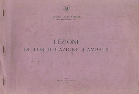 SCUOLA GENIO PIONIERI. UFFICIO ADDESTRAMENTO E STUDI, Lezioni di fortificazione campale, Roma, Tip. Scuola Genio Pionieri, 1961, br., pp 142, tavole in b./n. n.t, f.to 30,5x21. (ITA)