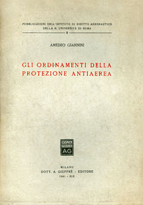 GIANNINI Amedeo (in testa: Pubblicazioni dell'Istituto di Diritto Aeronautico della R. Università di Roma), Gli ordinamenti della protezione antiaerea, Milano, Giuffrè, 1941-XIX, br., pp 50, f.to 18x25. (ITA)