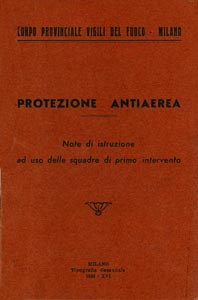 CORPO PROVINCIALE VIGILI DEL FUOCO. MILANO, Protezione antiaerea: note di istruzione ad uso delle squadre di primo intervento, Milano, Tipografia comunale, 1938, spill., pp 10, f.to 9,8x14,6. (ITA)
