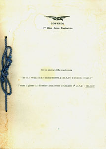 COMANDO 1^ ZONA AEREA TERRITORIALE, Breve sintesi della conferenza 'Difesa antiaerea territoriale (D.A.T.) e difesa civile', tenuta il giorno 15 dicembre 1955 presso il Comando 1^ Z.A.T. Milano, Milano, Comando 1^ Zona Aerea Territoriale, 1955, ?, pp 4, 1 ill. in b./n. n.t., f.to 16,5x22,5. (ITA) |