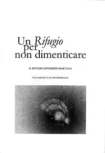 BONTEMPI Andrea (a cura di), Un rifugio per non dimenticare: Il rifugio antiaereo della Martana. Una raccolta di testimonianze, Massa, s.e., [2007], spill., pp 42, introd. di Giorgio Raffi (Assessore all'Ambiente, Infrastrutture, Manutenzione del Territorio e Protezione Civile), f.to 14,5x20,5 (ITA) |
