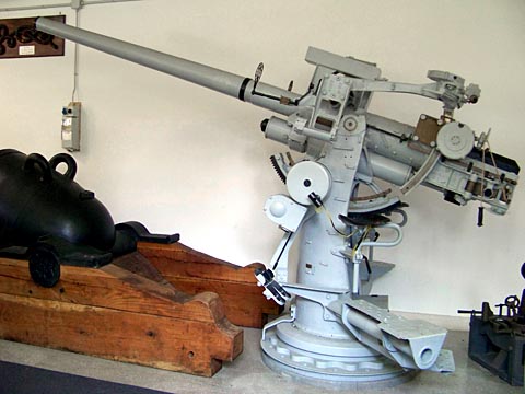 Esemplare su impianto singolo navale, con affusto a piedistallo (proveniente dalle fregate classe 'Altair', ex DDEE della U.S.N., cedute nel 1951 alla M.M.)